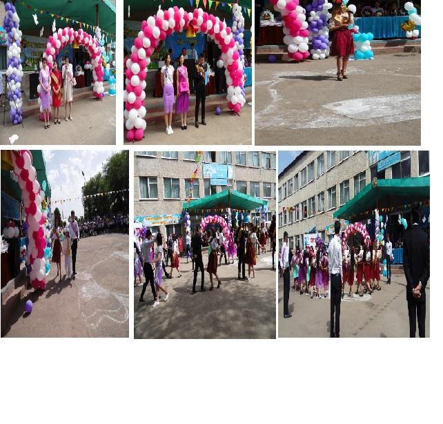 Мектеп алаңы түрлі – түсті шарлармен, жалаушалармен безендірілді.